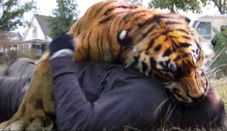 Shiva is a Bengal tiger and the loyal mascot of King Ezekiel. She is trained to attack those hostile to the Kingdom, including Saviors and walkers alike. However, she sacrifices herself to a horde of walkers to allow Ezekiel, Jerry, and Carol escape following a bloody conflict with the Saviors. In production, there is no actual tiger and, in most cases, she is added in as CGI in post-production. Where Shiva is shown interacting with other characters such as pouncing a character, this is done by an actor wearing a full blue body-suit to mimic the tiger's actions and using chroma-key effects in post-production to add the tiger's body.